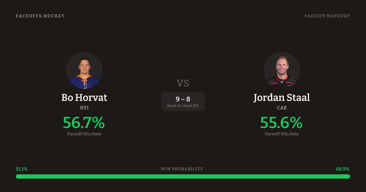 Bo Horvat vs Jordan Staal — Faceoff Head-to-Head