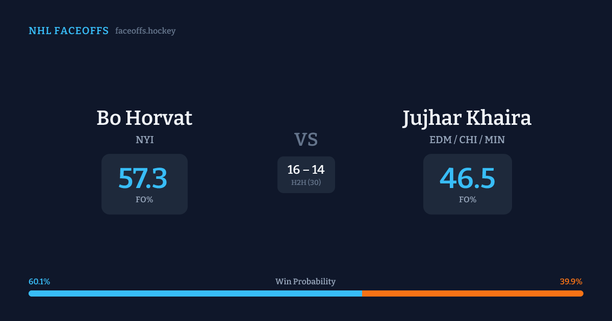 Bo Horvat vs Jujhar Khaira — Faceoff Head-to-Head