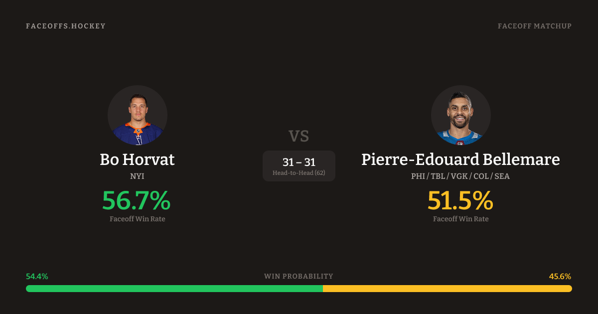 Bo Horvat vs Pierre-Edouard Bellemare — Faceoff Head-to-Head