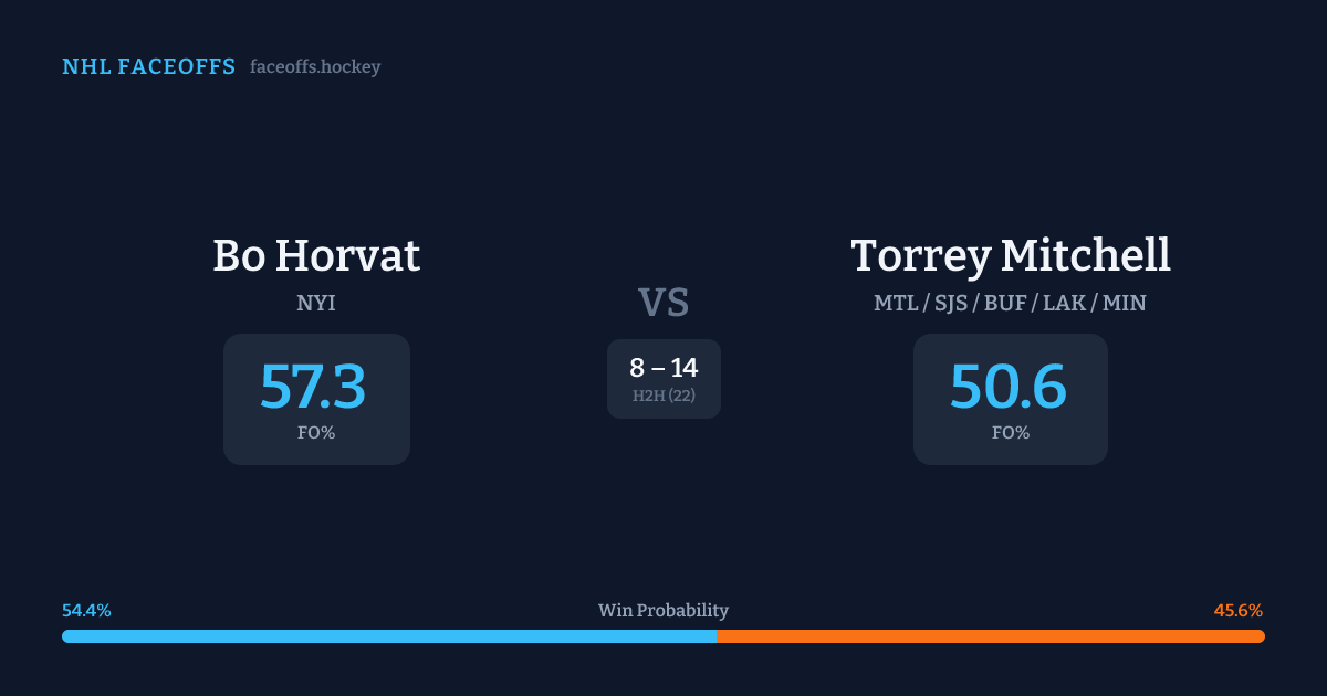 Bo Horvat vs Torrey Mitchell — Faceoff Head-to-Head
