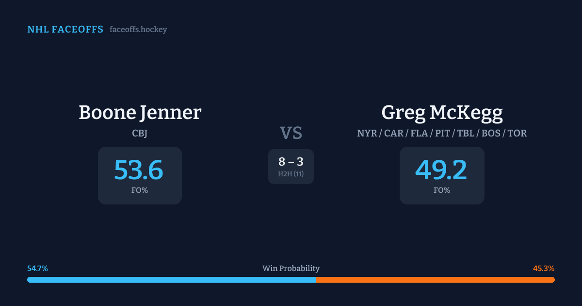 Boone Jenner vs Greg McKegg — Faceoff Head-to-Head