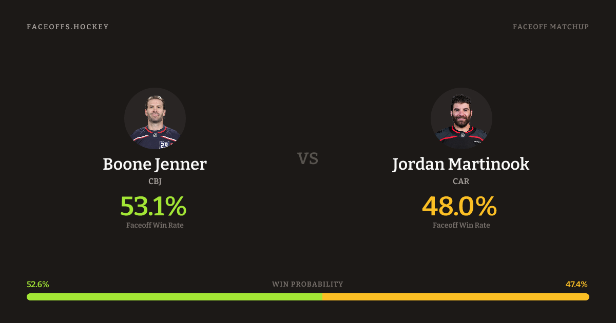 Boone Jenner vs Jordan Martinook — Faceoff Head-to-Head