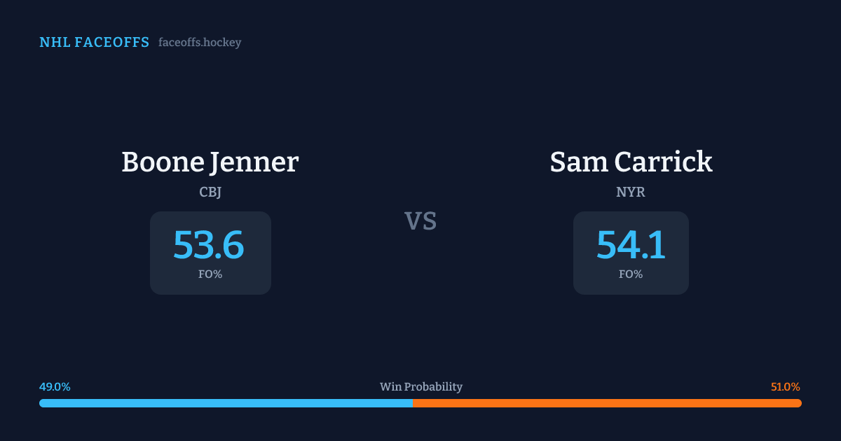 Boone Jenner vs Sam Carrick — Faceoff Head-to-Head