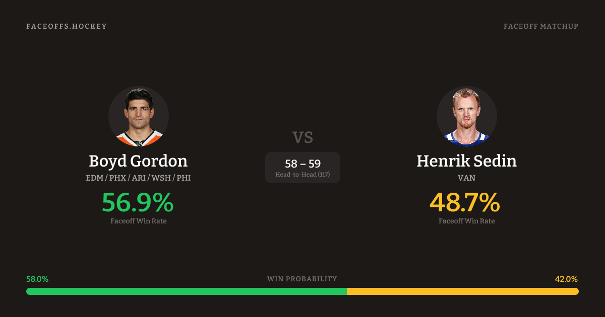 Boyd Gordon vs Henrik Sedin — Faceoff Head-to-Head