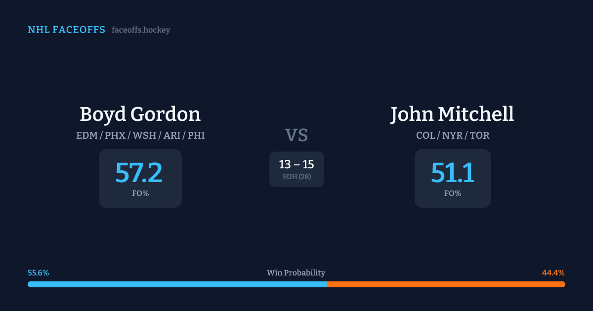 Boyd Gordon vs John Mitchell — Faceoff Head-to-Head
