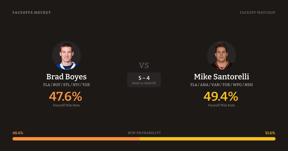 Brad Boyes vs Mike Santorelli — Faceoff Head-to-Head