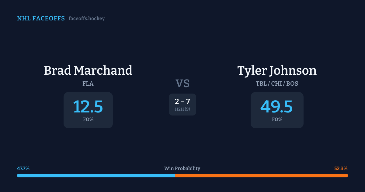 Brad Marchand vs Tyler Johnson — Faceoff Head-to-Head