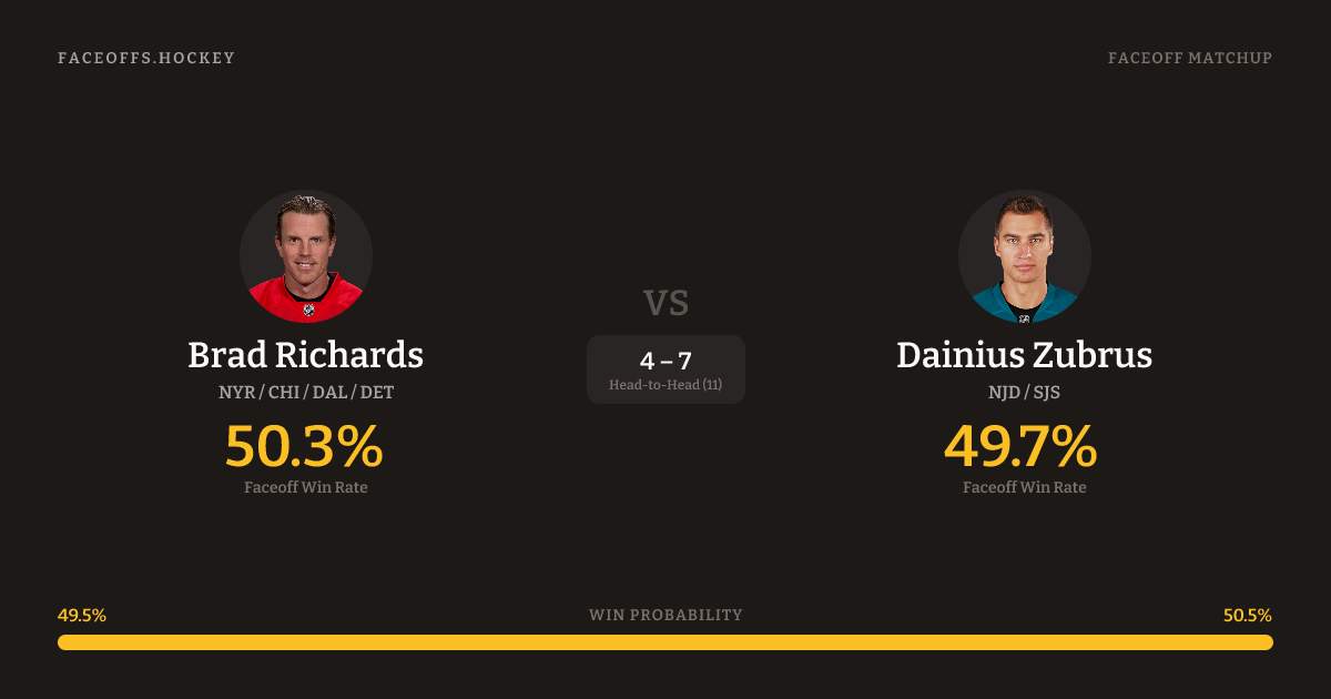 Brad Richards vs Dainius Zubrus — Faceoff Head-to-Head