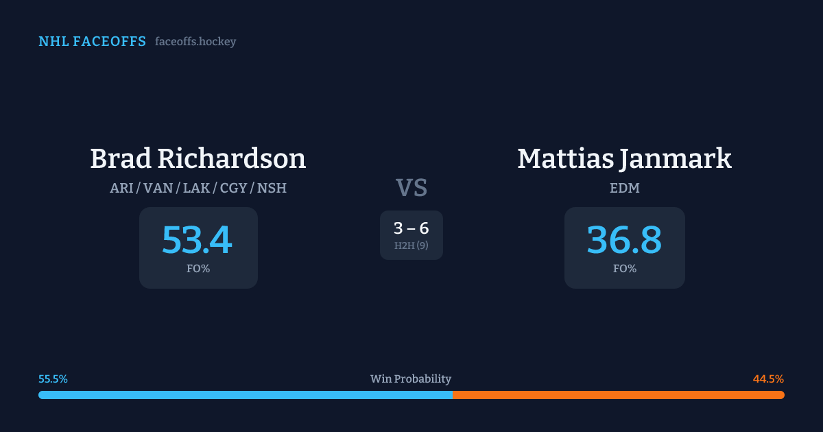 Brad Richardson vs Mattias Janmark — Faceoff Head-to-Head