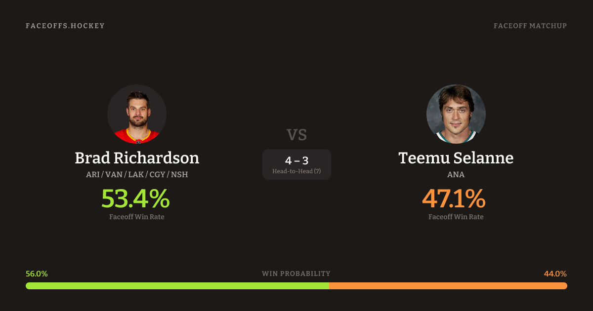 Brad Richardson vs Teemu Selanne — Faceoff Head-to-Head