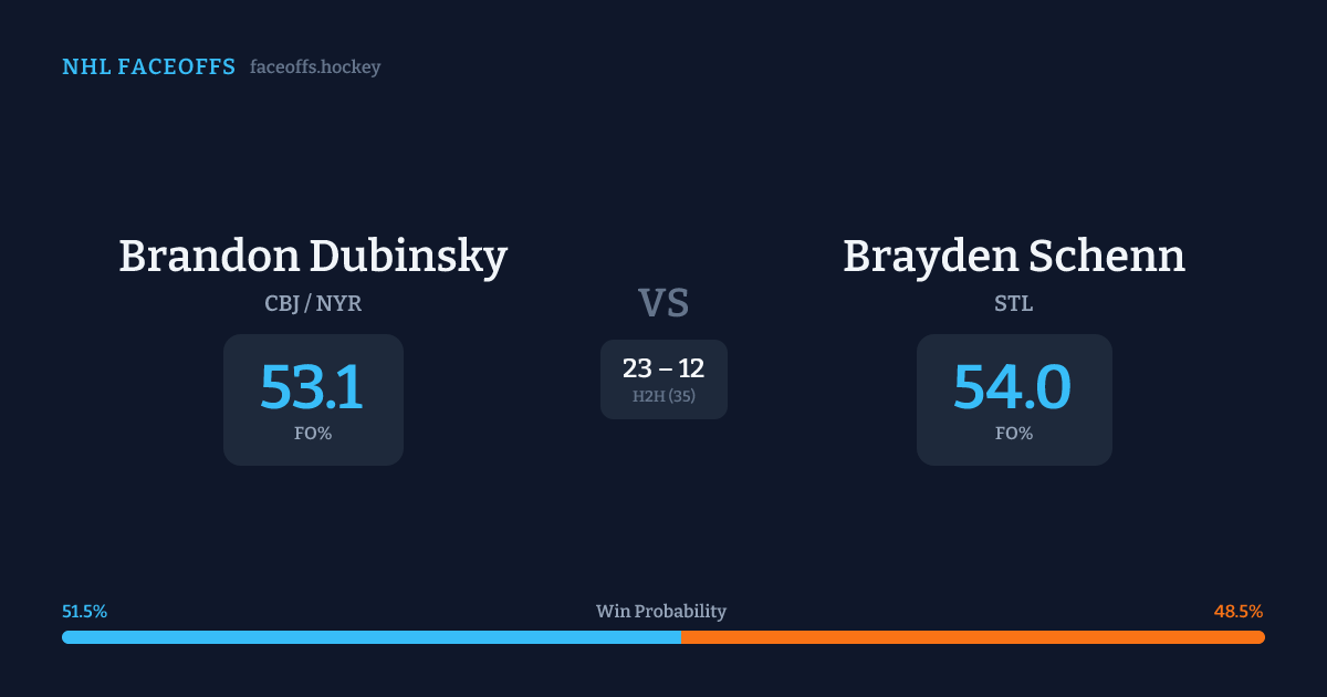 Brandon Dubinsky vs Brayden Schenn — Faceoff Head-to-Head