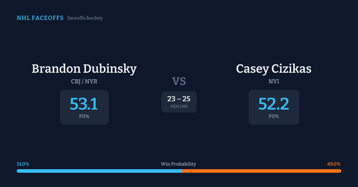 Brandon Dubinsky vs Casey Cizikas — Faceoff Head-to-Head