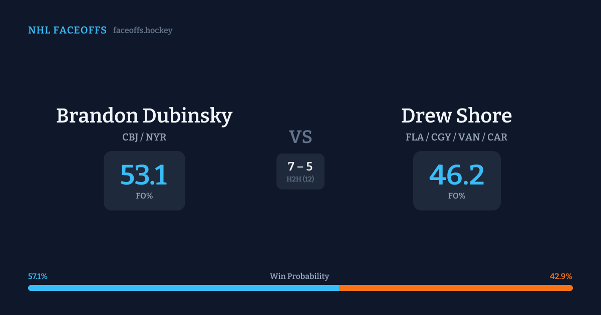 Brandon Dubinsky vs Drew Shore — Faceoff Head-to-Head
