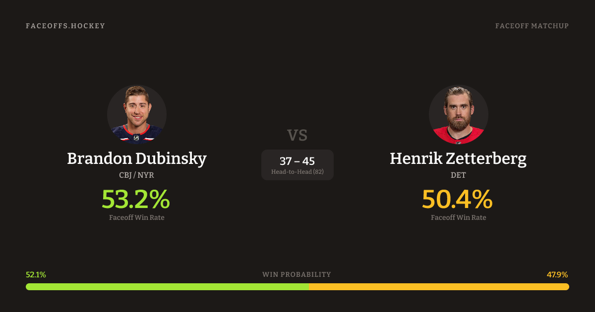 Brandon Dubinsky vs Henrik Zetterberg — Faceoff Head-to-Head