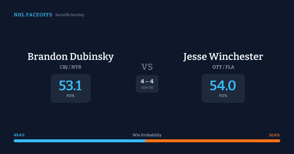 Brandon Dubinsky vs Jesse Winchester — Faceoff Head-to-Head