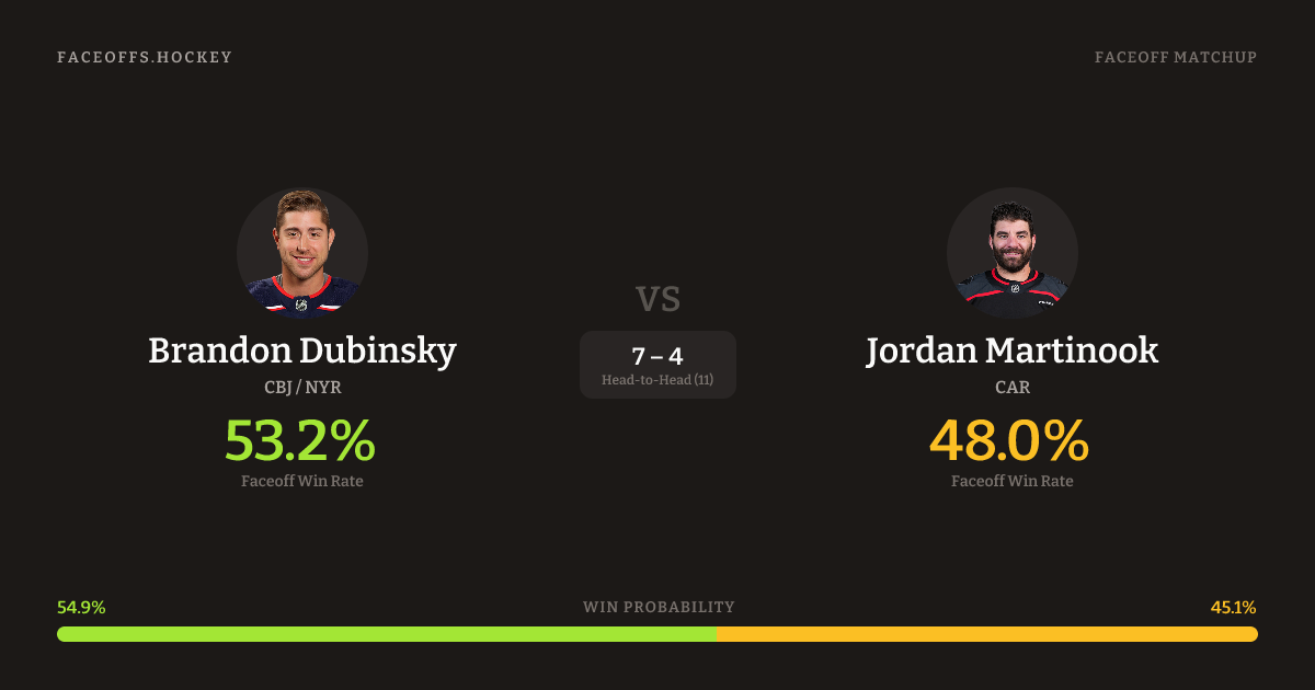 Brandon Dubinsky vs Jordan Martinook — Faceoff Head-to-Head