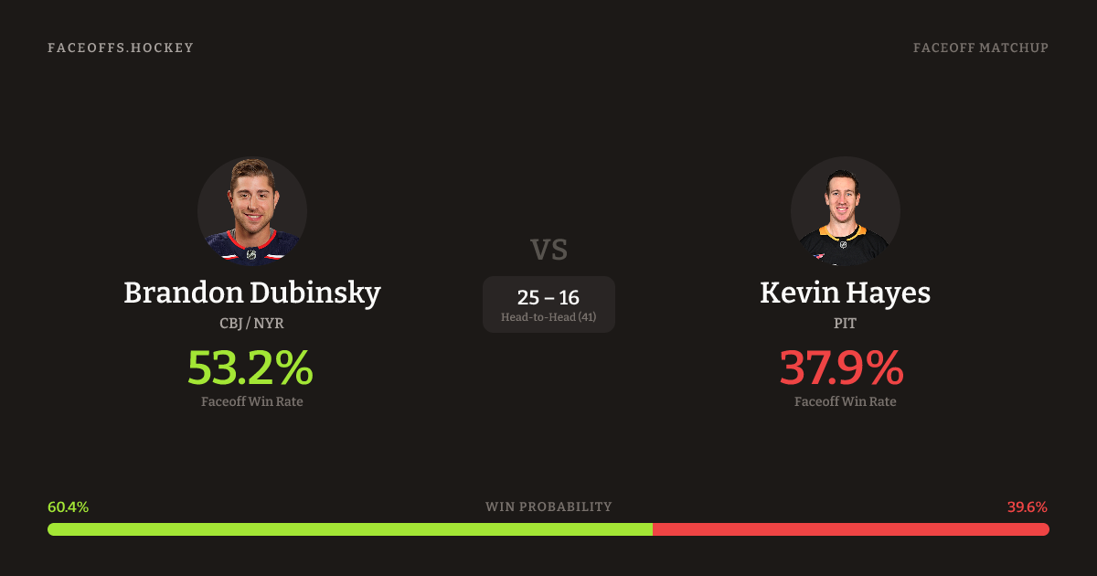 Brandon Dubinsky vs Kevin Hayes — Faceoff Head-to-Head