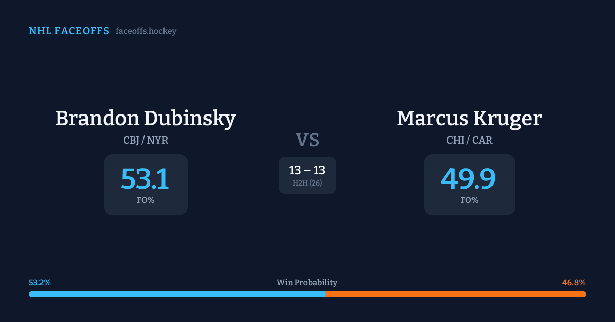 Brandon Dubinsky vs Marcus Kruger — Faceoff Head-to-Head