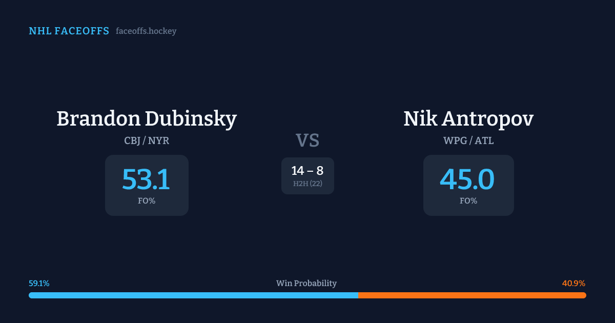 Brandon Dubinsky vs Nik Antropov — Faceoff Head-to-Head
