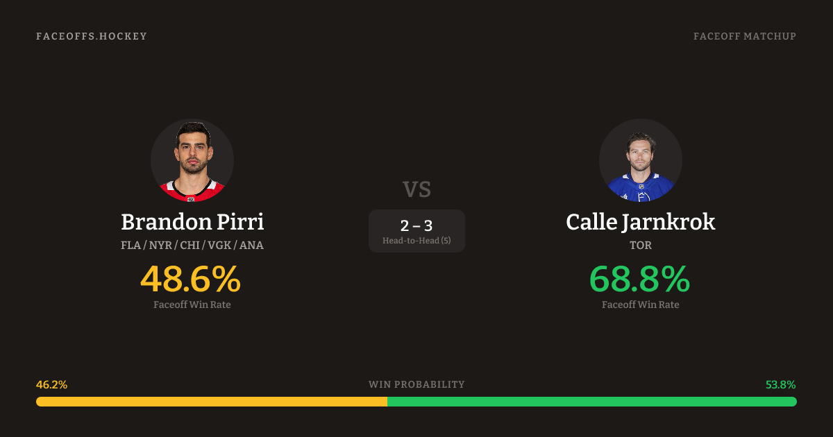 Brandon Pirri vs Calle Jarnkrok — Faceoff Head-to-Head