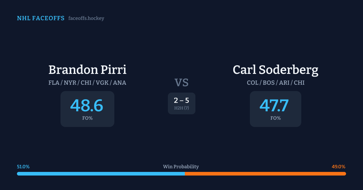 Brandon Pirri vs Carl Soderberg — Faceoff Head-to-Head