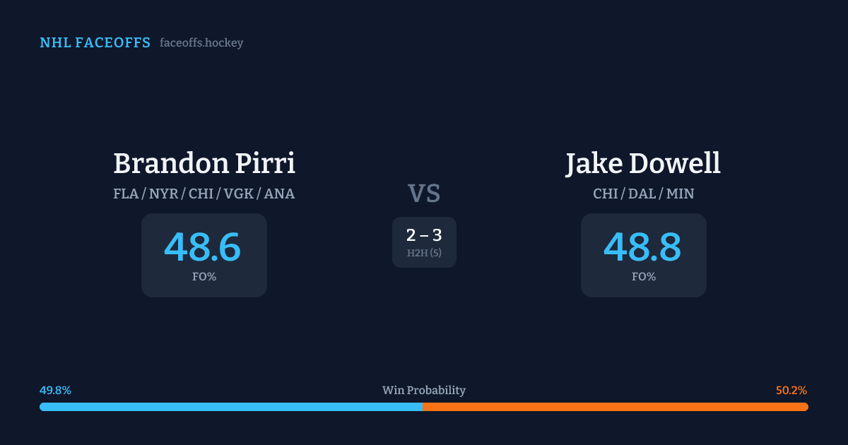 Brandon Pirri vs Jake Dowell — Faceoff Head-to-Head