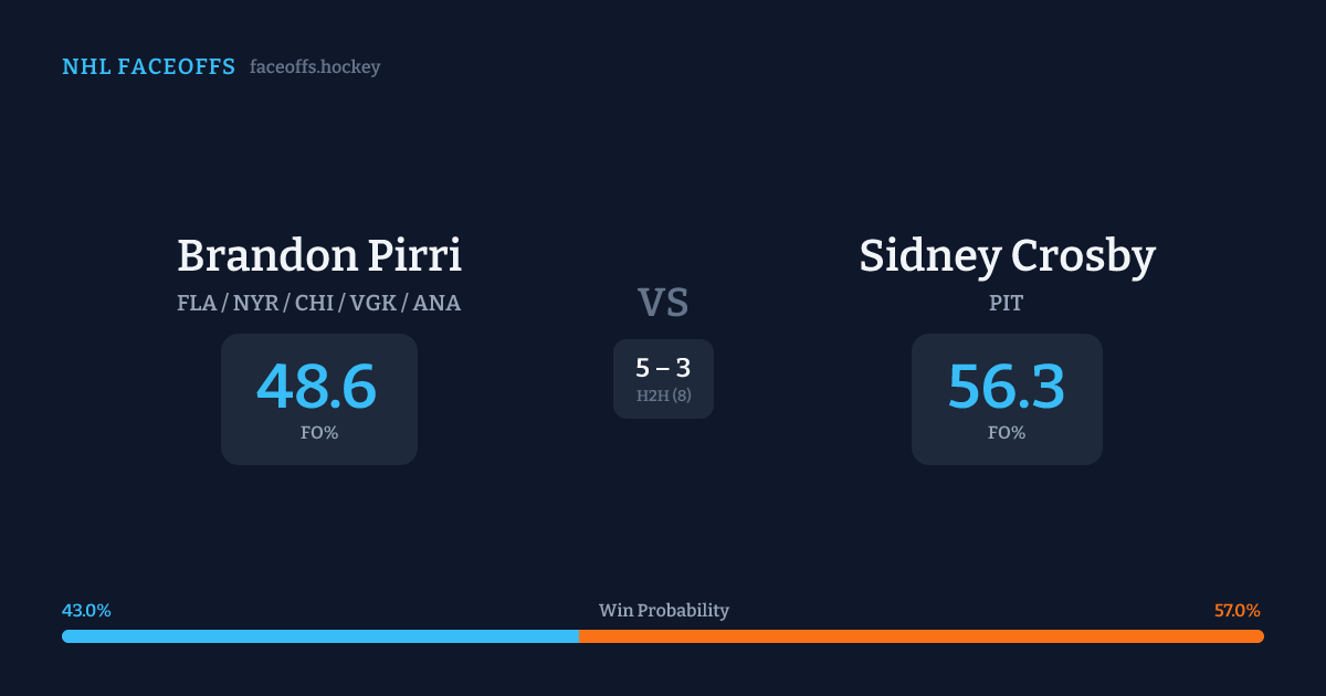 Brandon Pirri vs Sidney Crosby — Faceoff Head-to-Head