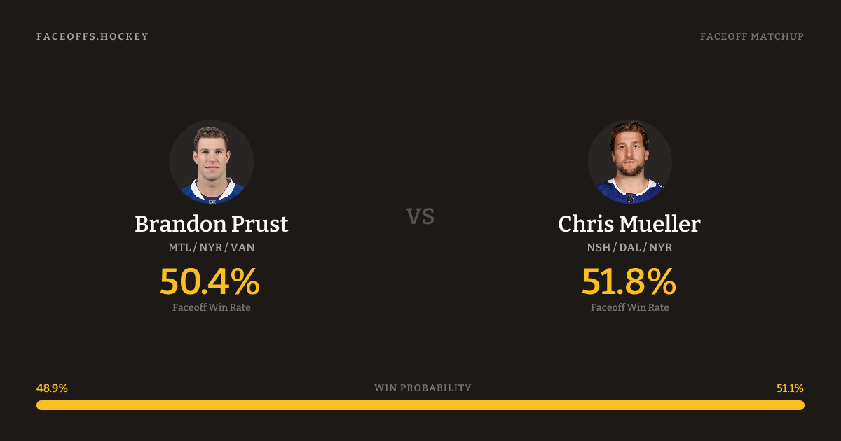 Brandon Prust vs Chris Mueller — Faceoff Head-to-Head