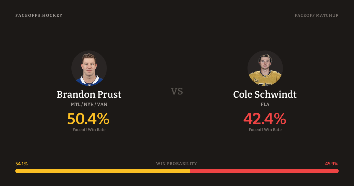 Brandon Prust vs Cole Schwindt — Faceoff Head-to-Head