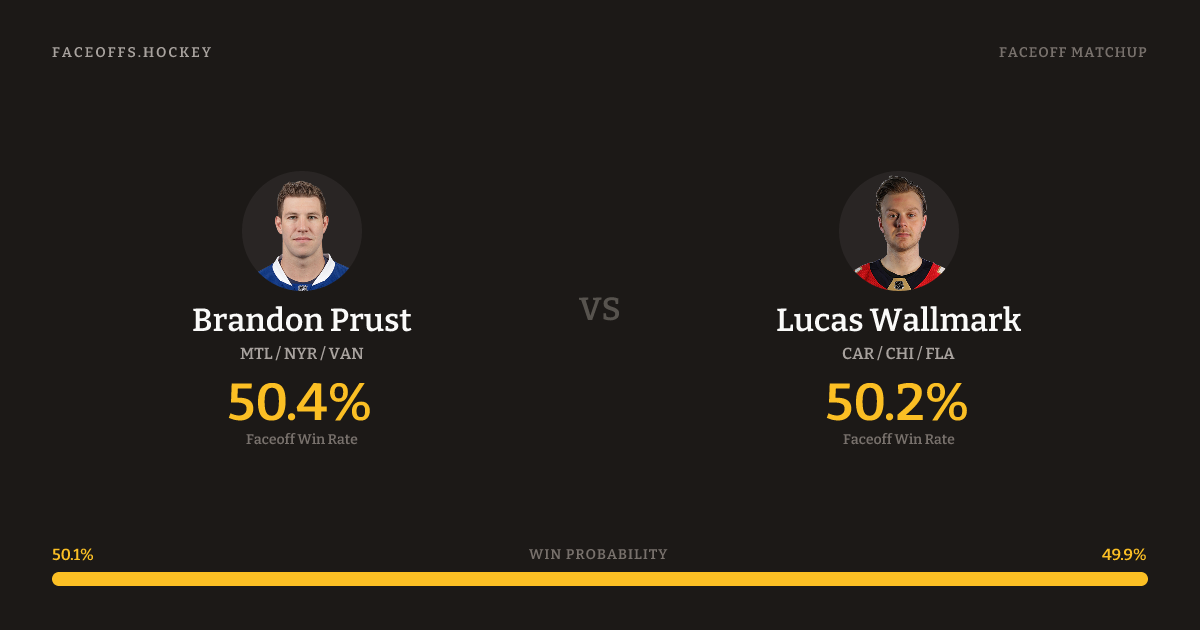 Wallmark shoots left. Prust is 52.1% vs left-shot opponents (142).