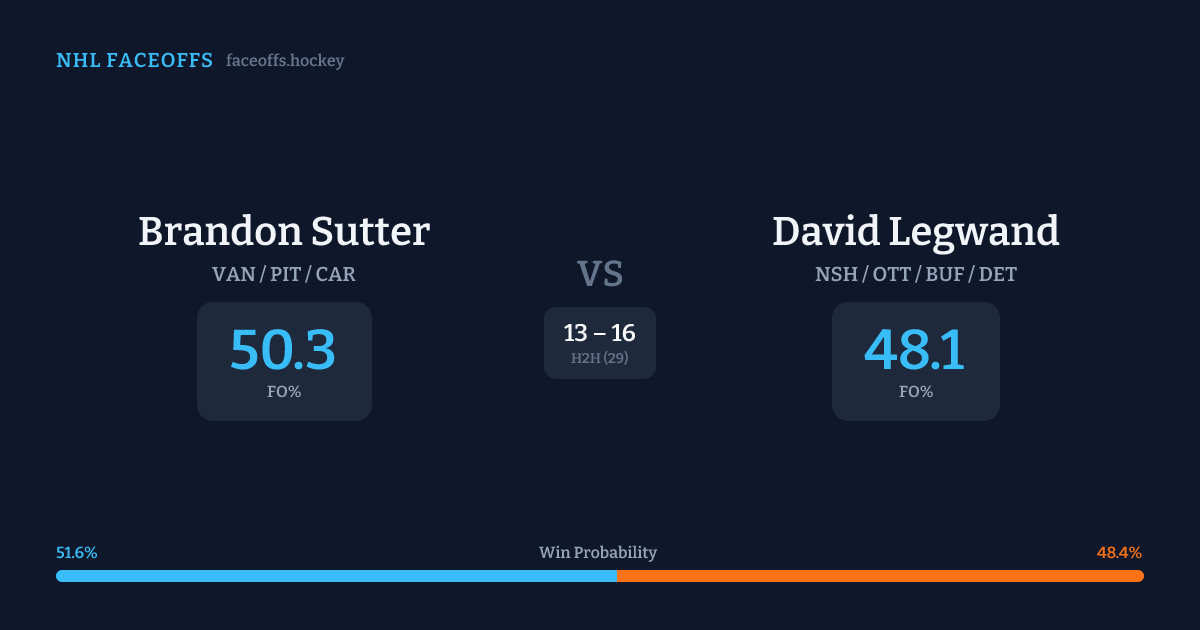 Brandon Sutter vs David Legwand — Faceoff Head-to-Head