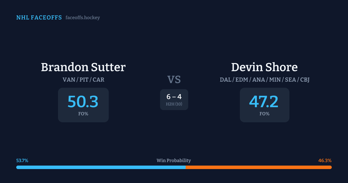 Brandon Sutter vs Devin Shore — Faceoff Head-to-Head