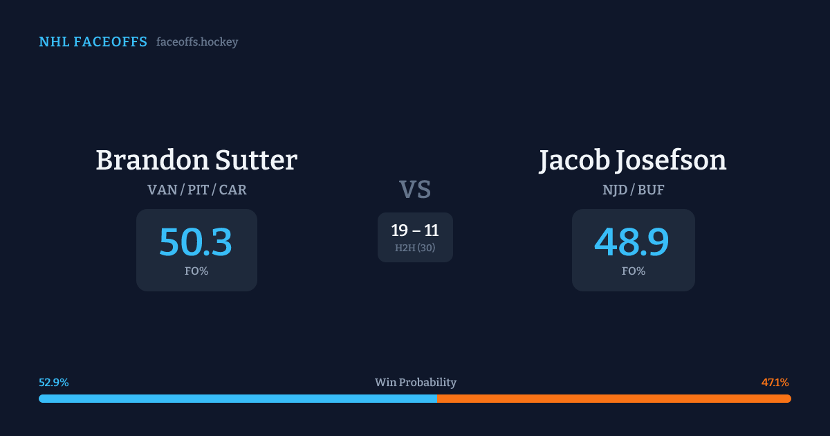 Brandon Sutter vs Jacob Josefson — Faceoff Head-to-Head