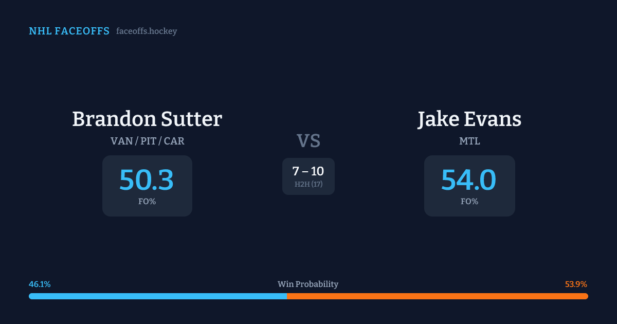 Brandon Sutter vs Jake Evans — Faceoff Head-to-Head