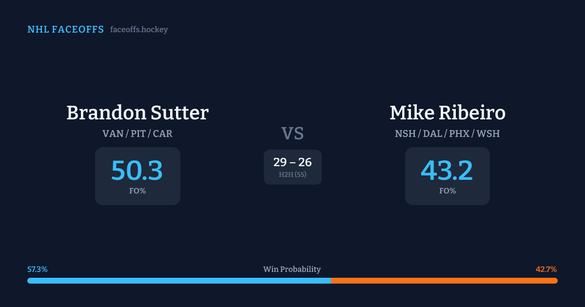 Brandon Sutter vs Mike Ribeiro — Faceoff Head-to-Head