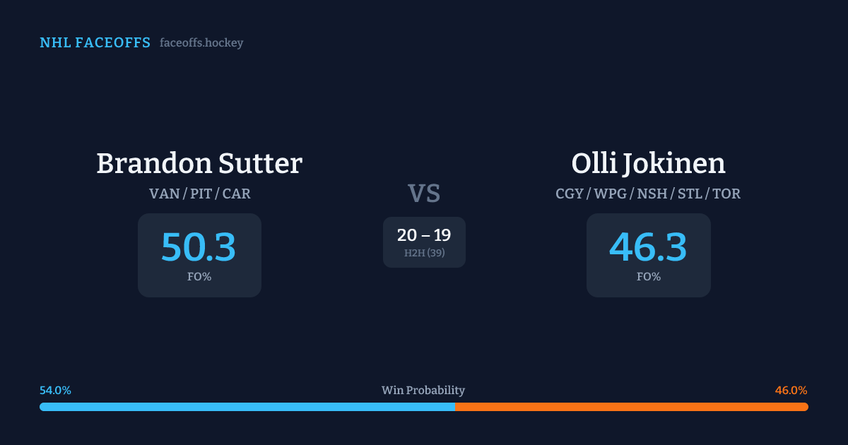 Brandon Sutter vs Olli Jokinen — Faceoff Head-to-Head