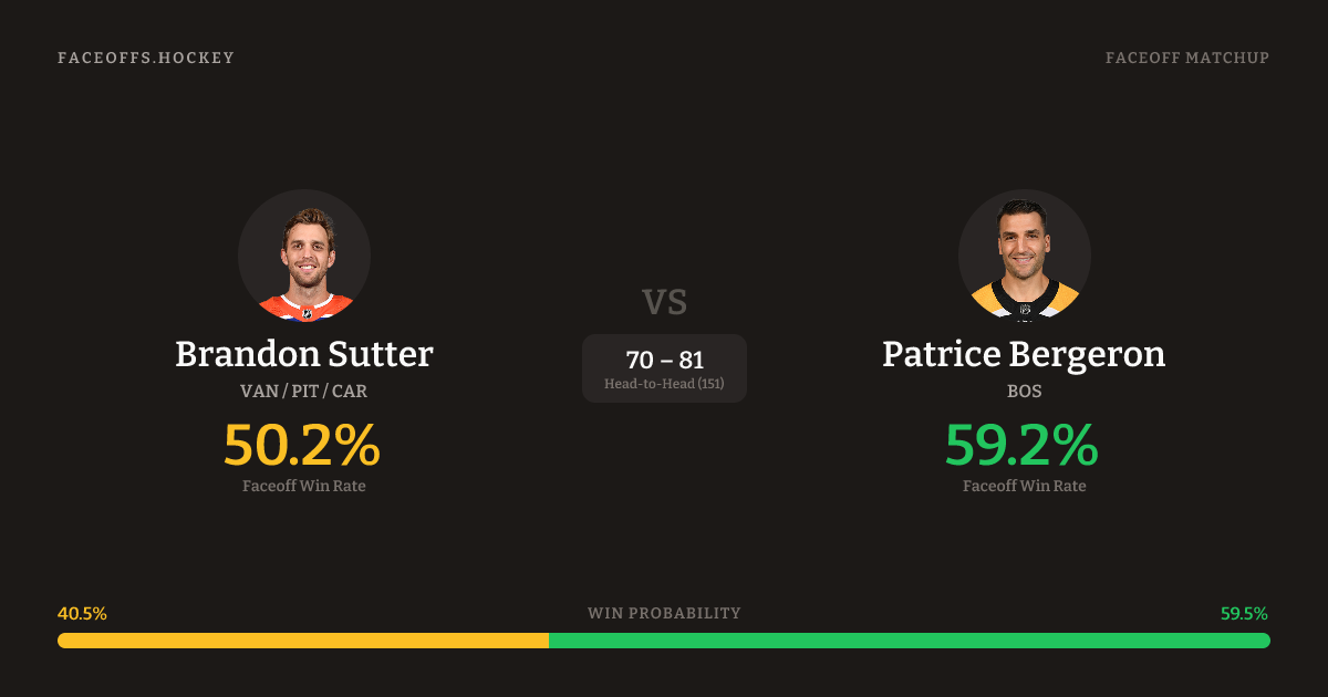 Brandon Sutter vs Patrice Bergeron — Faceoff Head-to-Head