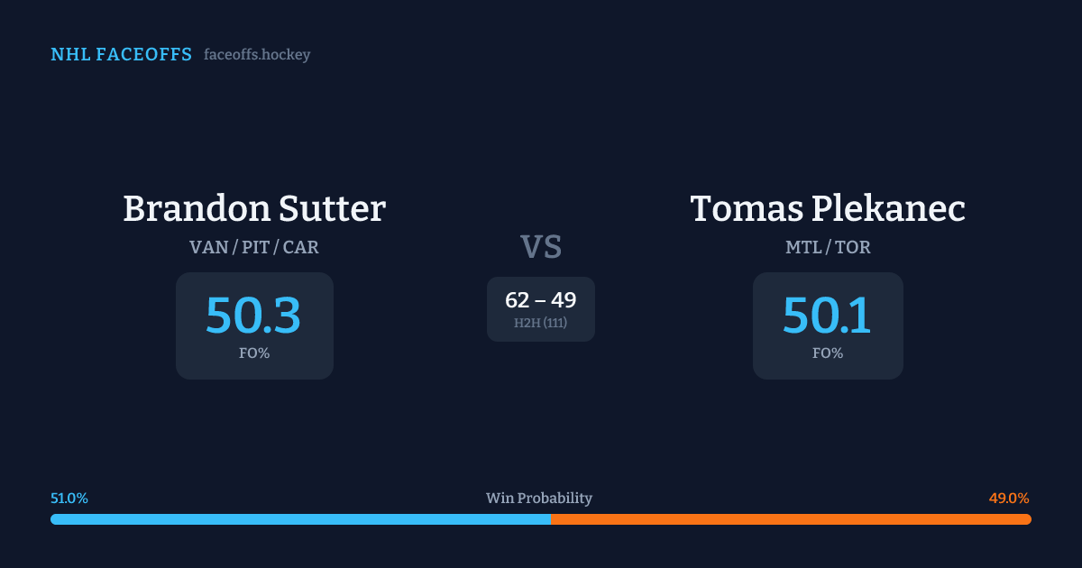 Brandon Sutter vs Tomas Plekanec — Faceoff Head-to-Head
