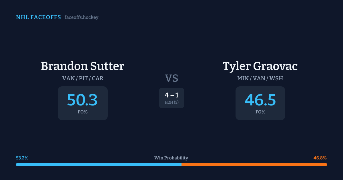Brandon Sutter vs Tyler Graovac — Faceoff Head-to-Head
