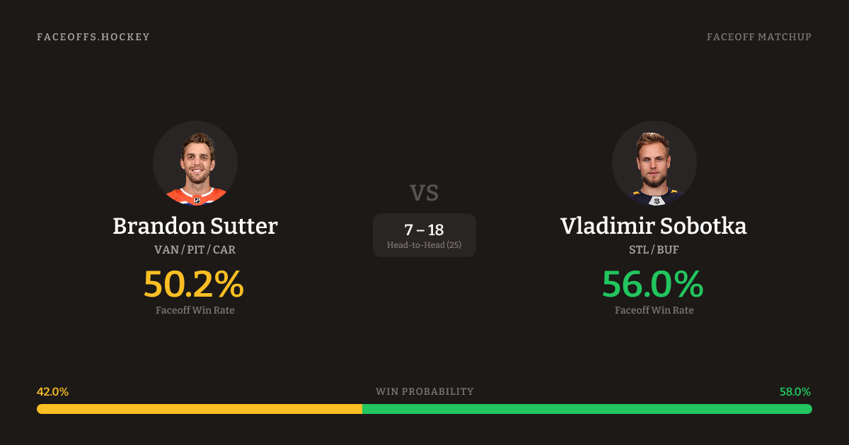 Brandon Sutter vs Vladimir Sobotka — Faceoff Head-to-Head