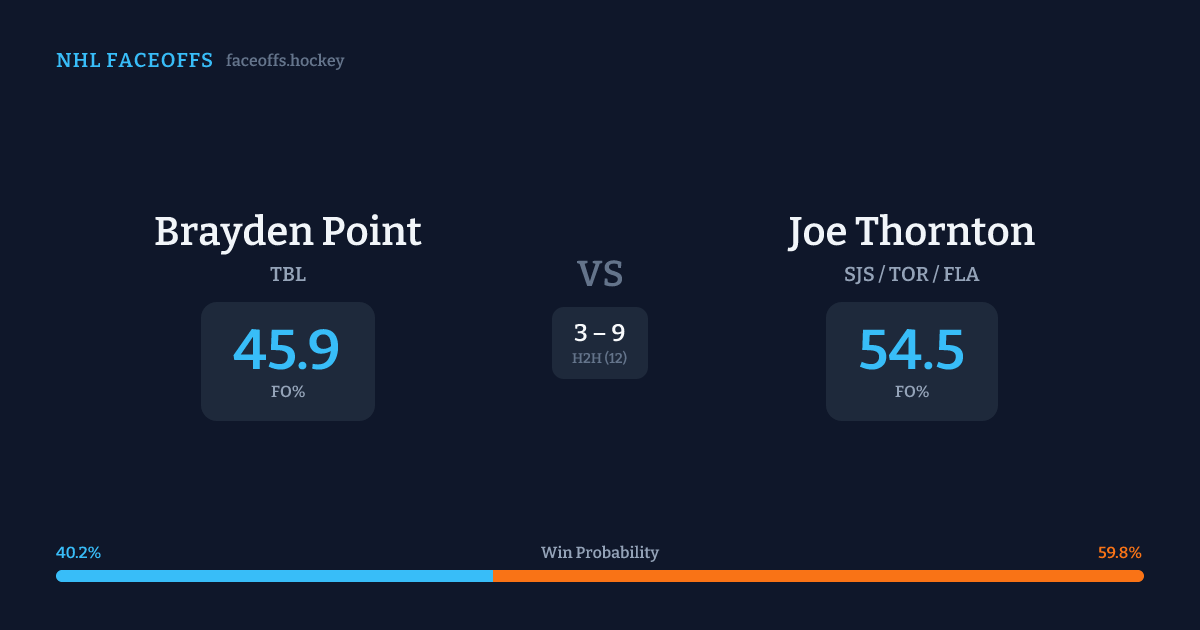 Brayden Point vs Joe Thornton — Faceoff Head-to-Head