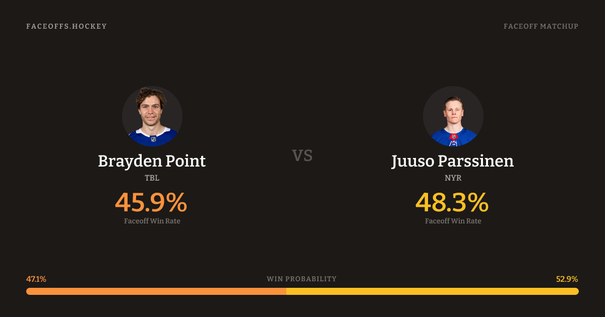 Brayden Point vs Juuso Parssinen — Faceoff Head-to-Head
