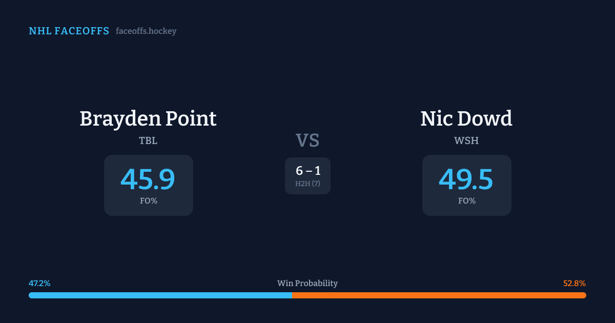 Brayden Point vs Nic Dowd — Faceoff Head-to-Head