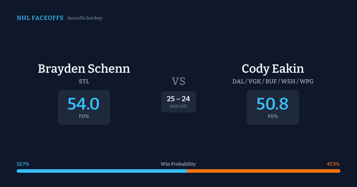 Brayden Schenn vs Cody Eakin — Faceoff Head-to-Head