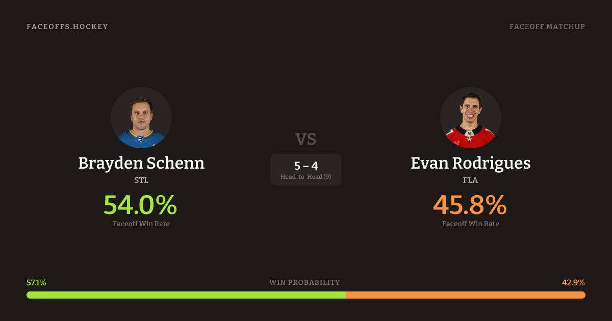 Brayden Schenn vs Evan Rodrigues — Faceoff Head-to-Head
