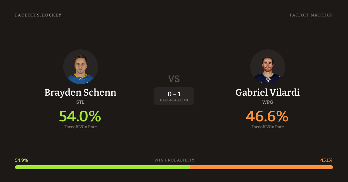 Brayden Schenn vs Gabriel Vilardi — Faceoff Head-to-Head