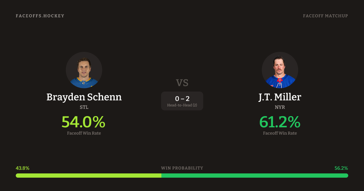 Brayden Schenn vs J.T. Miller — Faceoff Head-to-Head