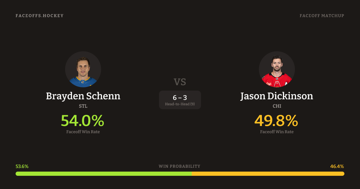 Brayden Schenn vs Jason Dickinson — Faceoff Head-to-Head