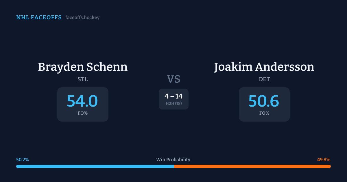 Brayden Schenn vs Joakim Andersson — Faceoff Head-to-Head