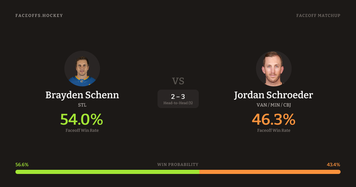 Brayden Schenn vs Jordan Schroeder — Faceoff Head-to-Head